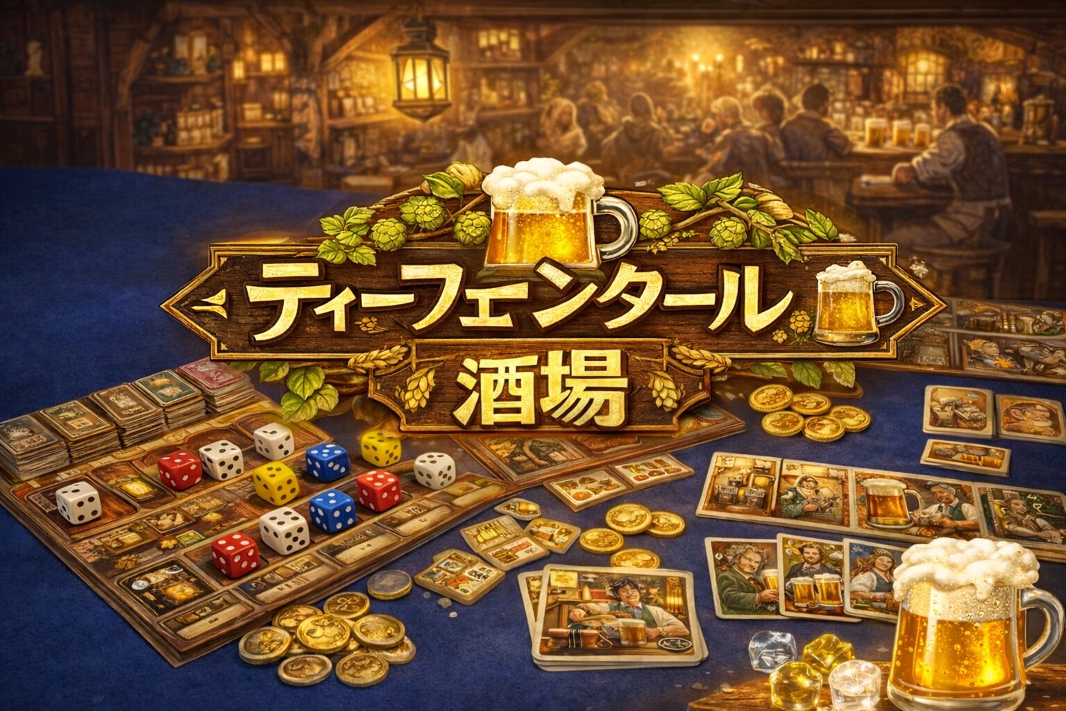 🌿 概要 「ティーフェンタールの酒場」は、自分の酒場を“改装しながら”繁盛店に育てるデッキ構築×ダイスドラフト(+ダイス配置)ゲームです。各ラウンドは「開店準備(カードをめくって席を埋める)→ ダイスを振る → コースターでダイスを回し取り... -