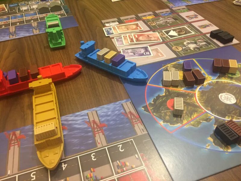 - 島に置いたコンテナ:各自が秘密で持つ「価値カード」に従って換金
